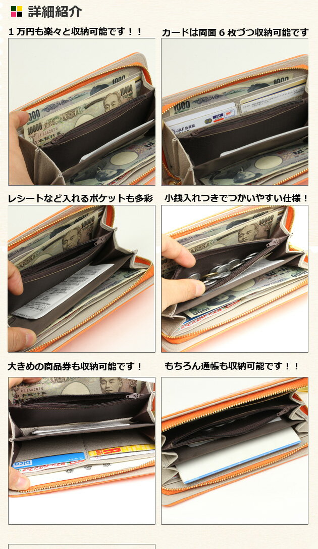 スペック サイズ(約)横21cm×縦10.5cm×マチ2.8cm 素材フェイクレザー 仕様カード入れ×8、 札入れポケット×3、 小銭入れ(ファスナー付き)×1、フリーポケット×2 重量(約)192g 梱包(約)箱付き Azar-アザール-から お伝えしたいこと 商品画像の画面上の色はお使いのブラウザやパソコン環境により、実物とは若干異なる場合があります。